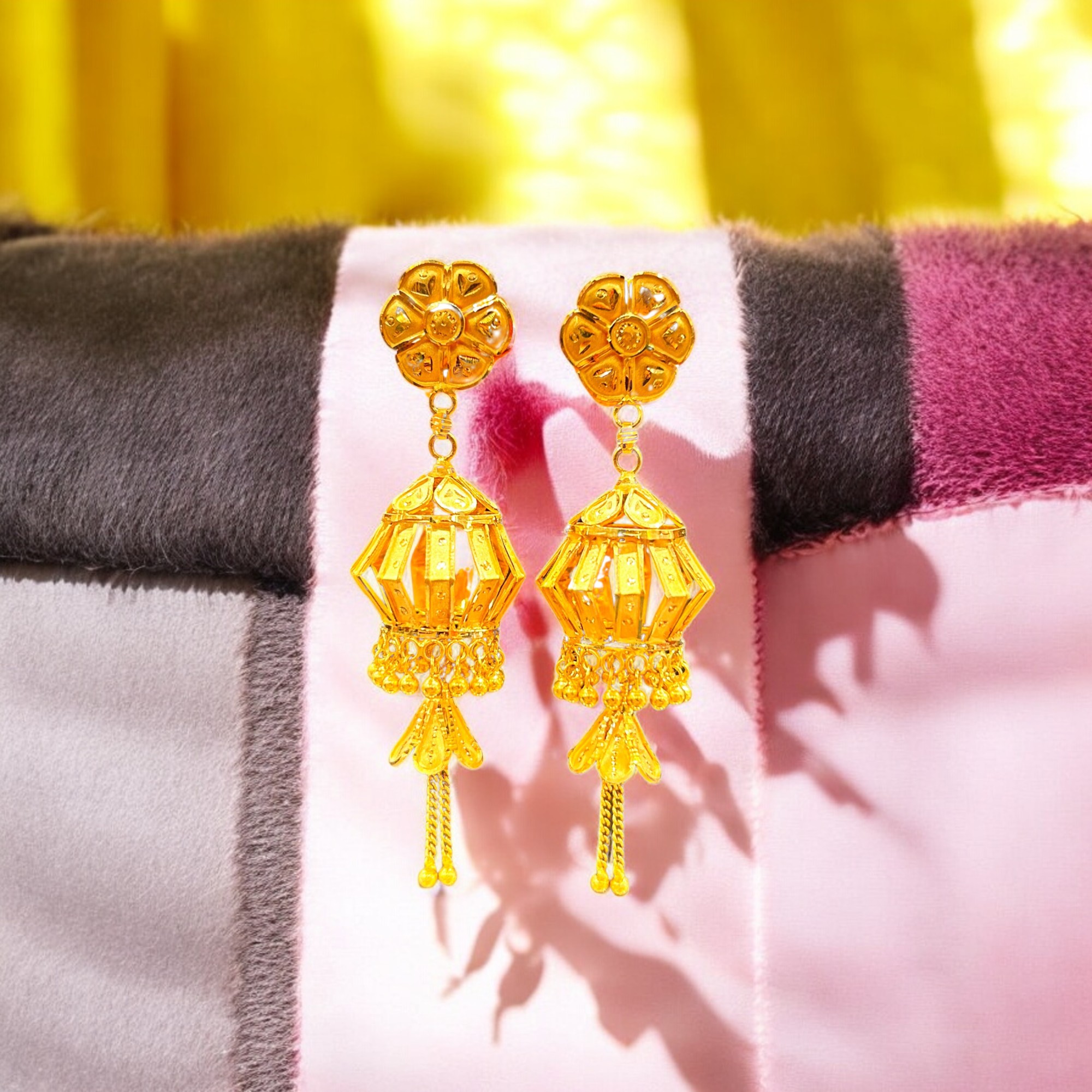 With a unique charm design, these 22kt gold earrings will add a whimsical touch to your look. Light and comfortable, they are perfect for everyday wear