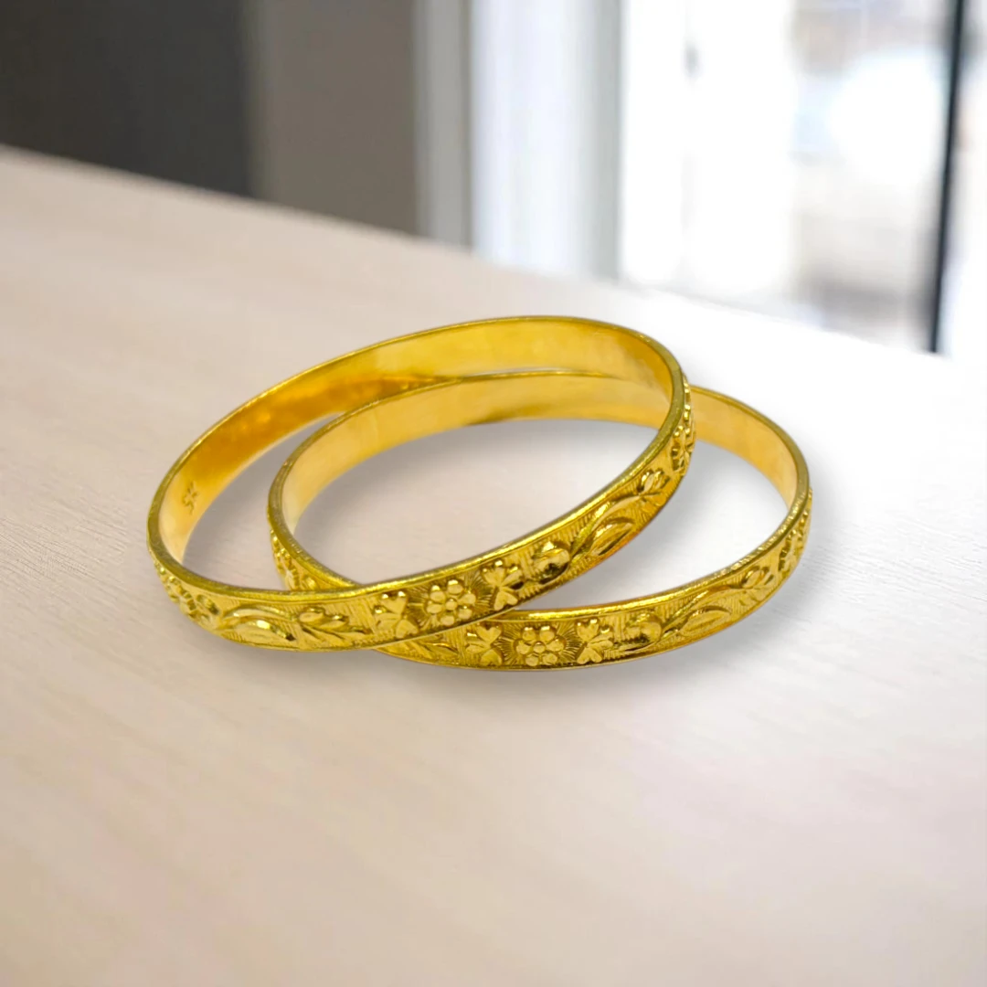 Embedded with half-cut faux stones, these bangles combine shimmer with traditional elegance in a golden finish.